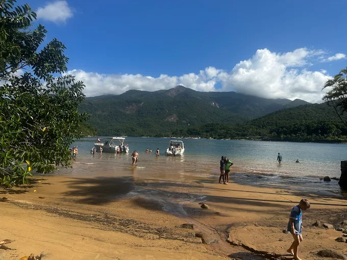 Você pode chegar por trilha a partir da Vila do Abraão (rota comum via Praia do Pouso) ou por barco até a Praia do Pouso + caminhada curta. Não há acesso por carro, o que ajuda a manter a praia preservada.